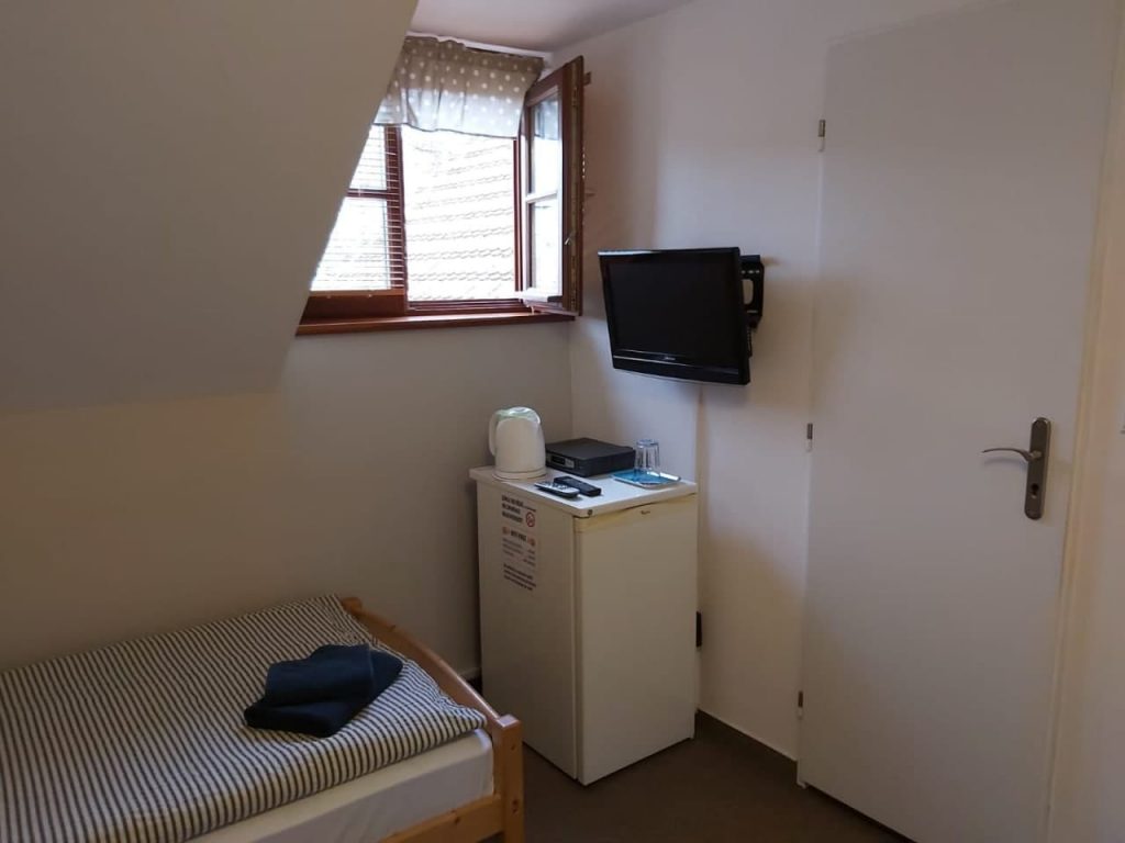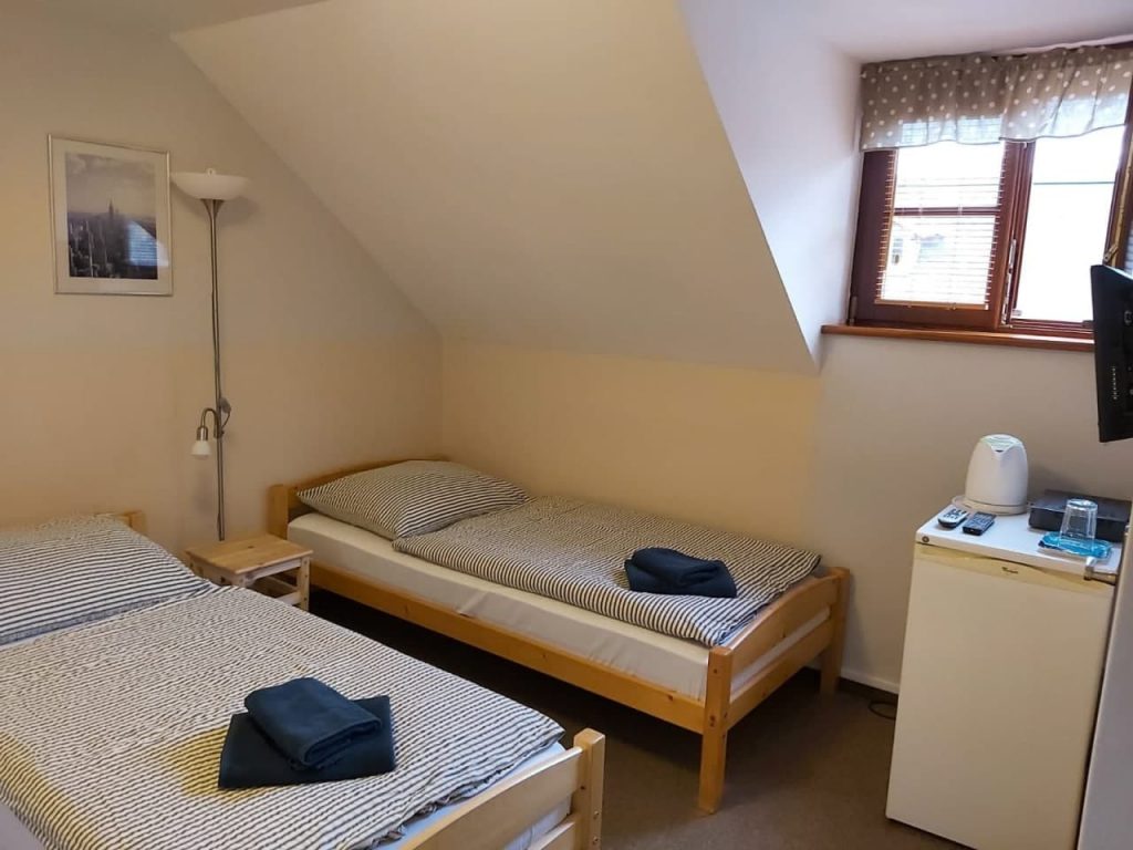 Dvoulůžkový pokoj s oddělenými postelemi a vlastní koupelnou Velikost pokoje 15 m² 2 jednolůžkové oddělené postele Maximálně 3 hosté, z toho max. 2 dospělí Celá jednotka se nachází v patře Soukromé parkování zdarma Wi-Fi zdarma vlastní koupelna výhled do zahrady TV s plochou obrazovkou, satelitní programy, rádio lednička, rychlovarná konvice fén, žehlička zásuvka u postele topení koberec terasa venkovní nábytek toaleta sprcha ručníky toaletní papír toaletní potřeby zdarma povlečení dětská jídelní židlička skříň, psací stůl věšák na oblečení, sušák na prádlo stolní hry/puzzle Kouření zakázáno